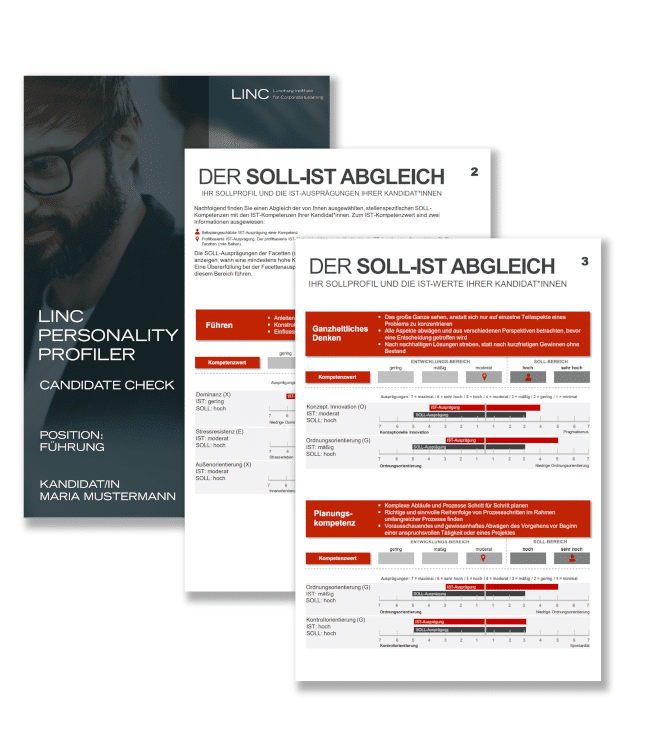 The LINC PERSONALITY PROFILER is ideal for personnel development, personnel selection and for coaching purposes. In addition, the LINC PERSONALITY PROFILER can be easily integrated into special topics, e.g. in team workshops or in sales seminars.